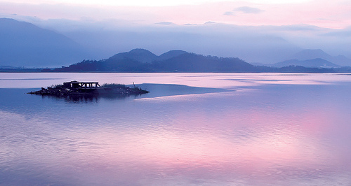 bình minh rải xuống mặt hồ